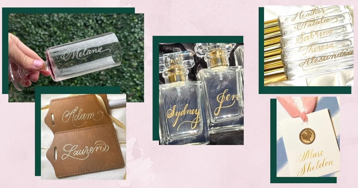 Allison Noelle’s live calligraphy services add a captivating, interactive element to your event. Watching beautiful lettering come to life in real time is both mesmerizing and memorable — guests are drawn in, engaged, and thrilled to receive keepsakes that are personalized just for them!